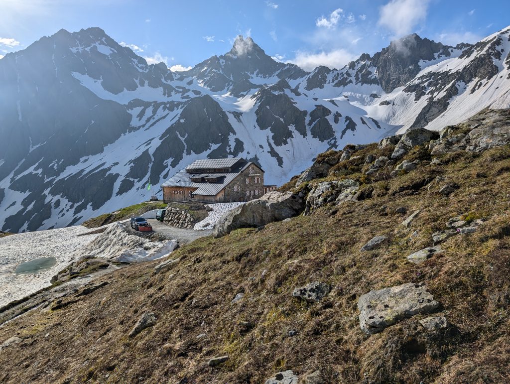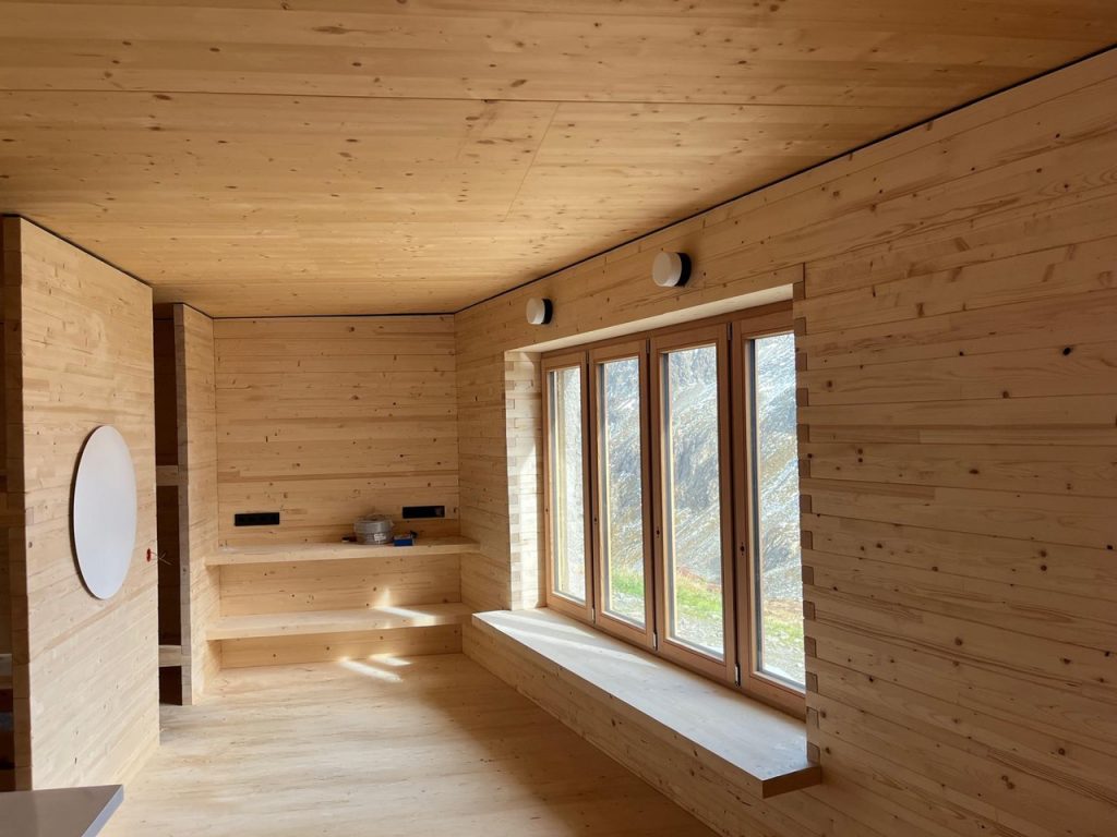 Anbauten Darmstädter Hütte bei St.Anton am Arlberg (neu) Darmstädter Hütte bei St. Anton am ArlbergDarmstädter Hütte SüdansichtDarmstädter Hütte Nordwestansicht mit GaragenneubauDarmstädter Hütte, Beginn Bauarbeiten 2022Darmstädter Hütte, UntergeschossDarmstädter Hütte, Anbau von einem Winterraum und einer Garage, Ansicht SüdwestWinterraum innen_AlkovenWinterraum innen